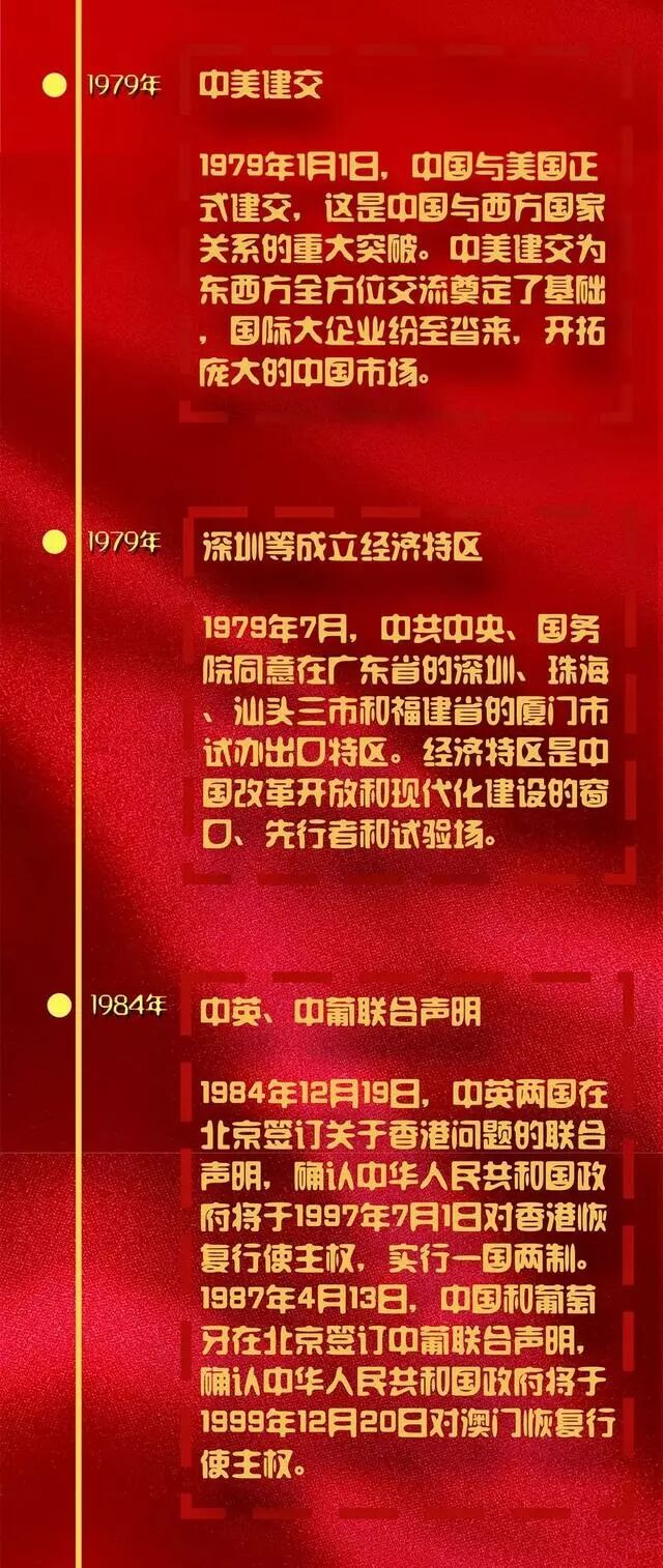 1978—2018,中國改革開放走過輝煌40載。從深圳經濟特區的“殺出壹條血路”、上海浦東開發、香港回歸、中國加入世貿組織、北京舉辦奧運、中國航母服役,到中國夢與“壹帶壹路”倡議的提出……這當中有探索、冒險、挫折;更有收成、慶賀、夢想,每壹步都寫滿了艱辛,凝固成經驗與成就,傳遞推動人們走向未來的勇氣。